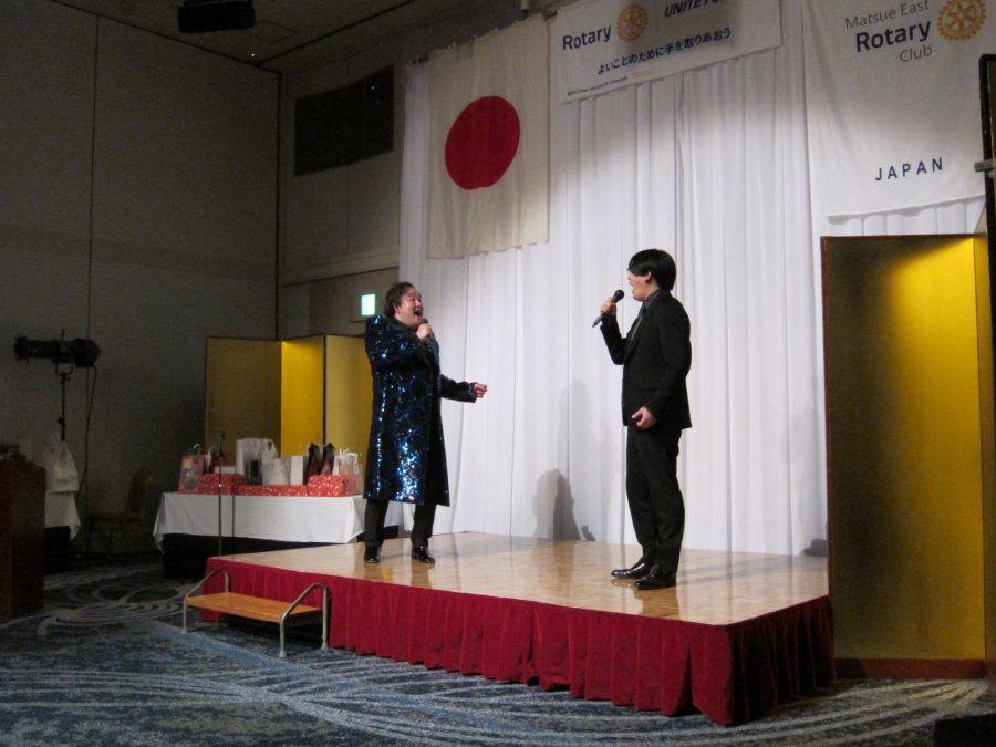 アトラクションのゲストの引野祐亮氏の素晴らしい歌唱力に圧倒されながらも、ホテル一畑さんの心のこもった料理を堪能しました。